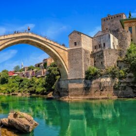 - Cầu Mostar – cũng là biểu tượng của thành phố Mostar. Tại đây, Quý khách có dịp ngắm toàn cảnh thành phố cũng như nhìn thấy màu xanh tuyệt đẹp của dòng sông Neretva và Khu phố cổ Mostar – là một thị trấn quan trọng nhất trong khu vực Herzegovina của Bosnia và Herzegovina. Mostar xinh xắn bởi những ngôi nhà đá nằm san sát bên nhau, nép mình bên các triền núi thoai thoải.