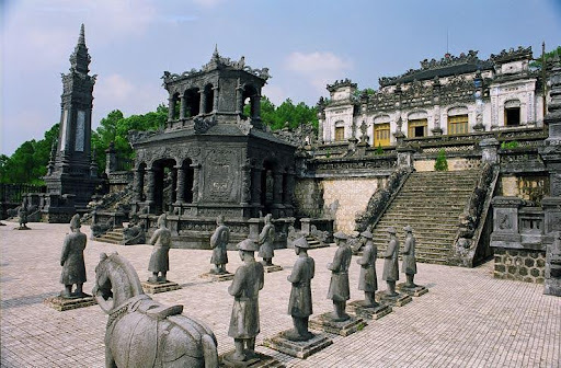 - Đại Nội Huế – là nơi sinh hoạt và là trung tâm hành chính của triều đình phong kiến cuối cùng của Việt Nam. Đây cũng là nơi sinh sống của 13 vị vua hoàng gia nhà Nguyễn. Sau đó ghé vào Lăng Khải Định – công trình mang nhiều trường phái kiến trúc khác nhau, kết hợp Đông – Tây, Âu – Á, Cổ Kim độc đáo so với các công trình kiến trúc truyền thống Việt Nam/ hoặc Lăng Tự Đức – phản ánh cuộc đời tài hoa nhưng bạc mệnh của vị vua.